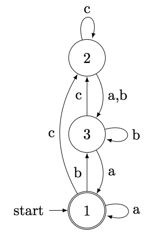 < deterministic automaton on 3 letters with 3 states >