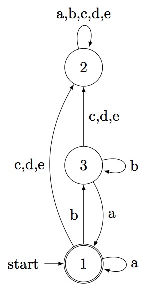 < deterministic automaton on 5 letters with 3 states >