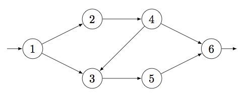 The token passing network below represents the list that was output by Parstacks(4,3).