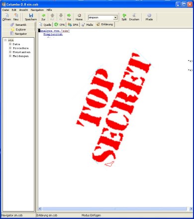 In der Ermittlung der Funktion und Identifikation von Fehlern unterscheidet sich Columbo deutlich von anderen Werkzeugen. Die Theorie beruht auf algebraischer Semantik, einer eindeutigen Normalform und einem Termersetzungssystem.