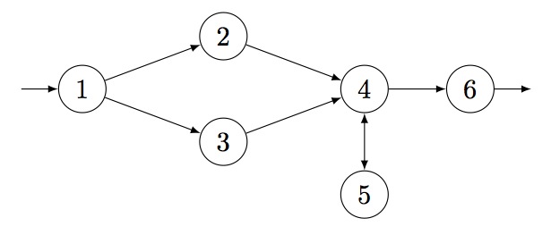 The token passing network below represents the list that was output by Parstacks(4,3).