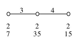 Alt( [ 1 .. 8 ] ) gap> pabs:= [ > Group([ (2,4,6), (1,3,2)(4,8)(6,7) ]), > Group([ (1,6,7,8,4), (2,5)(3,4) ]), > Group([ (3,6)(7,8), (2,4,5), (1,5)(2,4), (2,4)(6,7), (6,8,7), > (1,2)(4,5), (3,7)(6,8) ]), > Group([ (1,7,8,4)(2,5,3,6), (1,3)(2,6)(4,8)(5,7), (1,5)(2,4)(3,7)(6,8), > (1,8)(2,7)(3,4)(5,6), (1,3)(2,6)(4,7)(5,8) ]) ]; [ Group([ (2,4,6), (1,3,2)(4,8)(6,7) ]), Group([ (1,6,7,8,4), (2,5)(3,4) ]), Group([ (3,6)(7,8), (2,4,5), (1,5)(2,4), (2,4)(6,7), (6,8,7), (1,2) (4,5), (3,7)(6,8) ]), Group([ (1,7,8,4)(2,5,3,6), (1,3)(2,6)(4,8) (5,7), (1,5)(2,4)(3,7)(6,8), (1,8)(2,7)(3,4)(5,6), (1,3)(2,6)(4,7)(5,8) ]) ] gap> cg:=CosetGeometry(g,pabs); CosetGeometry( AlternatingGroup( [ 1 .. 8 ] ) ) gap> diag:=DiagramOfGeometry(cg); < Diagram of CosetGeometry( AlternatingGroup( [ 1 .. 8 ] ) , [ Group( [ (2,4,6), (1,3,2)(4,8)(6,7) ] ), Group( [ (1,6,7,8,4), (2,5)(3,4) ] ), Group( [ (3,6)(7,8), (2,4,5), (1,5)(2,4), (2,4)(6,7), (6,8,7), (1,2)(4,5), (3,7)(6,8) ] ), Group( [ (1,7,8,4)(2,5,3,6), (1,3)(2,6)(4,8)(5,7), (1,5)(2,4)(3,7)(6,8), (1,8)(2,7)(3,4)(5,6), (1,3)(2,6)(4,7)(5,8) ] ) ] ) > gap> DrawDiagram(diag, "neuma8"); gap> #Exec("gv neuma8.ps"); gap> point:=Random(ElementsOfIncidenceStructure(cg,1)); <element of type 1 of CosetGeometry( AlternatingGroup( [ 1 .. 8 ] ) )> gap> residue:=ResidueOfFlag(FlagOfIncidenceStructure(cg,[point])); CosetGeometry( Group( [ (3,5,7), (1,7)(2,4,3)(5,8) ] ) ) gap> diagc3:=DiagramOfGeometry(residue); < Diagram of CosetGeometry( Group( [ (3,5,7), (1,7)(2,4,3)(5,8) ] ) , [ Group( [ (4,5,8), (1,4,5), (1,7,8), (1,8,4,2,7) ] ), Group( [ (1,8)(4,7), (2,5,3), (1,7)(2,3), (1,7,8), (1,4)(7,8) ] ), Group( [ (1,5,4,3)(7,8), (2,4)(5,8) ] ) ] ) > gap> DrawDiagram(diagc3, "a7geo"); gap> #Exec("gv a7geo.ps");