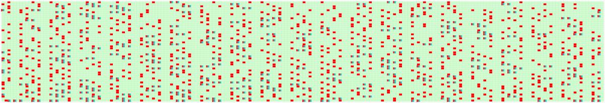 gap> #LoadPackage("numericalsgps"); gap> gap> ns := NumericalSemigroup(11,19,30,42,59);; gap> cls := ShuffleIP_Colors([IP_ColorsGreenTones,IP_ColorsCompBlueTones]);; gap> flen := 20;; gap> #some notable elements gap> arr := [SmallElementsOfNumericalSemigroup(ns), > GapsOfNumericalSemigroup(ns), > MinimalGeneratingSystemOfNumericalSemigroup(ns), > FundamentalGapsOfNumericalSemigroup(ns), > [ConductorOfNumericalSemigroup(ns)], > PseudoFrobeniusOfNumericalSemigroup(ns)];; gap> gap> tkz := IP_TikzArrayOfIntegers(flen,rec(colors := cls,highlights:=arr));;