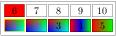 Let us explain how the six colors used for the cell containing 1 are distributed: upper left corner -- red; upper right corner -- green; lower left corner -- blue; lower right corner -- cyan; the number -- magenta; the border -- yellow.