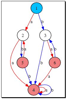 For example, the command DrawCayleyGraph(b21); would produce the following image (where state i represents the element Elements(S)[i], the neutral element is coloured in "light blue" and all other idempotents are coloured in "light coral"):